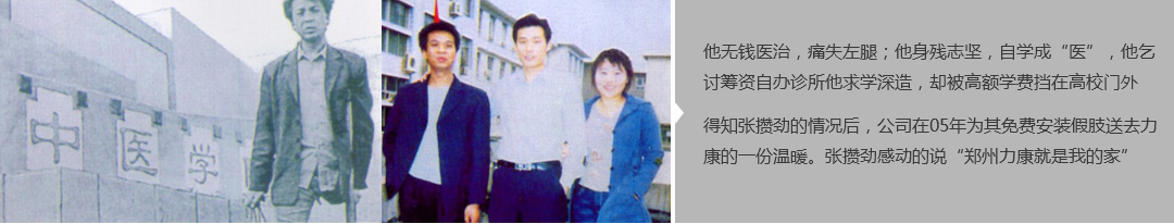 鄭州市力康假肢矯形器有限公司(簡稱力康),是一家專業從事假肢矯形器的設計、研發(fā)、制作及裝 配的專業機構。成立于1992年是河南省唯一一家福利企業。力康下設業務部、技術部、住院部、康復 部、售后服務部,并配有現代化的裝配車間和功能齊全的訓練大廳,為殘疾朋友康復訓練提供了可靠 保障。總經理穿戴假肢多年,有著豐富的臨床經驗和親身體會;多年來,力康已為全國幾十萬名殘疾 朋友安裝上舒適、美觀、耐用的假肢和矯形器具,使他們更大限度地恢復了正常的工作和生活。“產 品即人品”的質量理念、先進的技術、實惠的價格、完善的售后服務是力康取勝的法寶……
